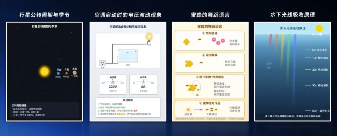 案例2:靈光App上線可視化“科普動(dòng)畫(huà)生成”功能,將抽象科學(xué)原理自動(dòng)轉(zhuǎn)化為動(dòng)態(tài)演示,讓教育與科普內(nèi)容從純文字升級(jí)為“秒懂級(jí)”的可視化表達(dá),鞏固了其在學(xué)習(xí)場(chǎng)景中的差異化優(yōu)勢(shì)。