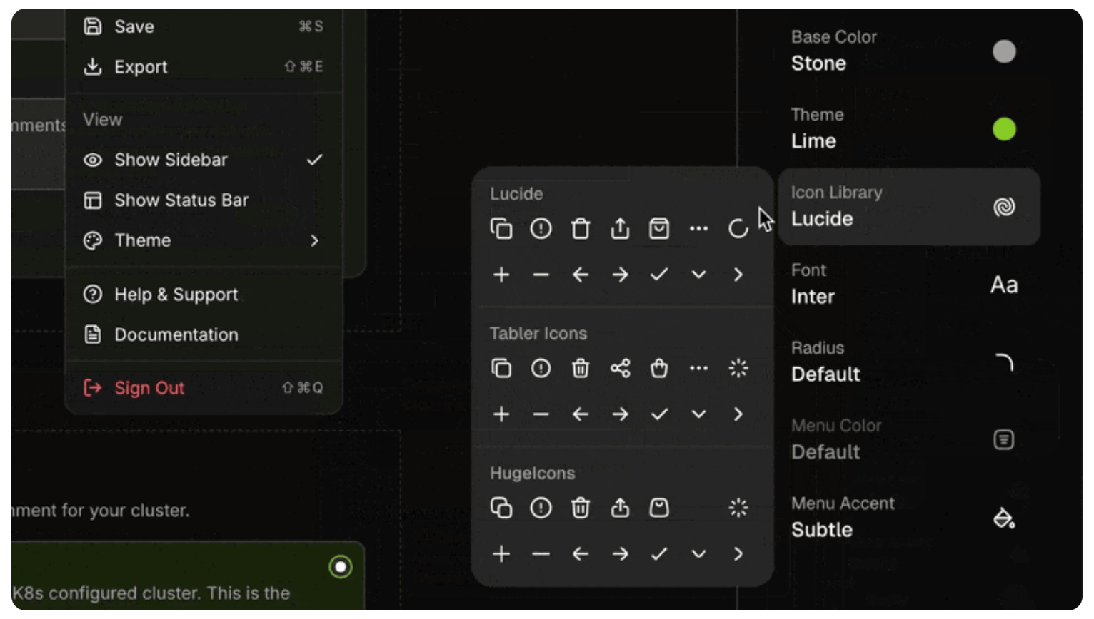 案例3:知名組件庫(kù)shadcn推出shadcn create,提供可視化方式自定義基礎(chǔ)組件的結(jié)構(gòu)、間距、字體與風(fēng)格,并支持一鍵在Next、Vite、TanStack Start中啟動(dòng)生成主題,大幅降低構(gòu)建專(zhuān)屬設(shè)計(jì)系統(tǒng)的門(mén)檻。