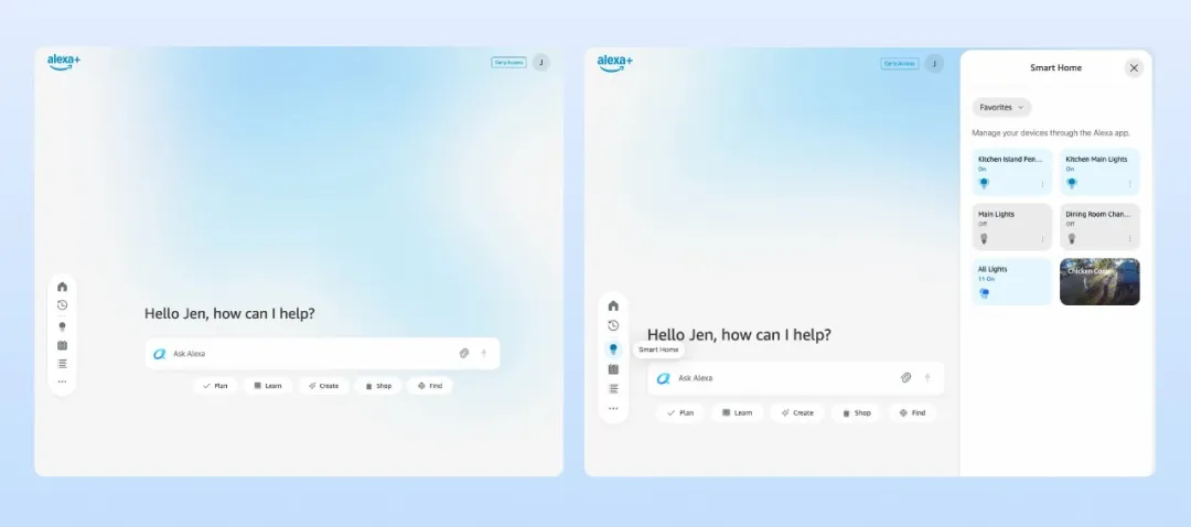 案例7:亞馬遜旗下AI智能家居助手Alexa Plus上線網(wǎng)頁(yè)端入口,將原本以語(yǔ)音和音箱為核心的家居控制能力延伸到桌面與工作流中,使其成為更常用的日常AI助理。