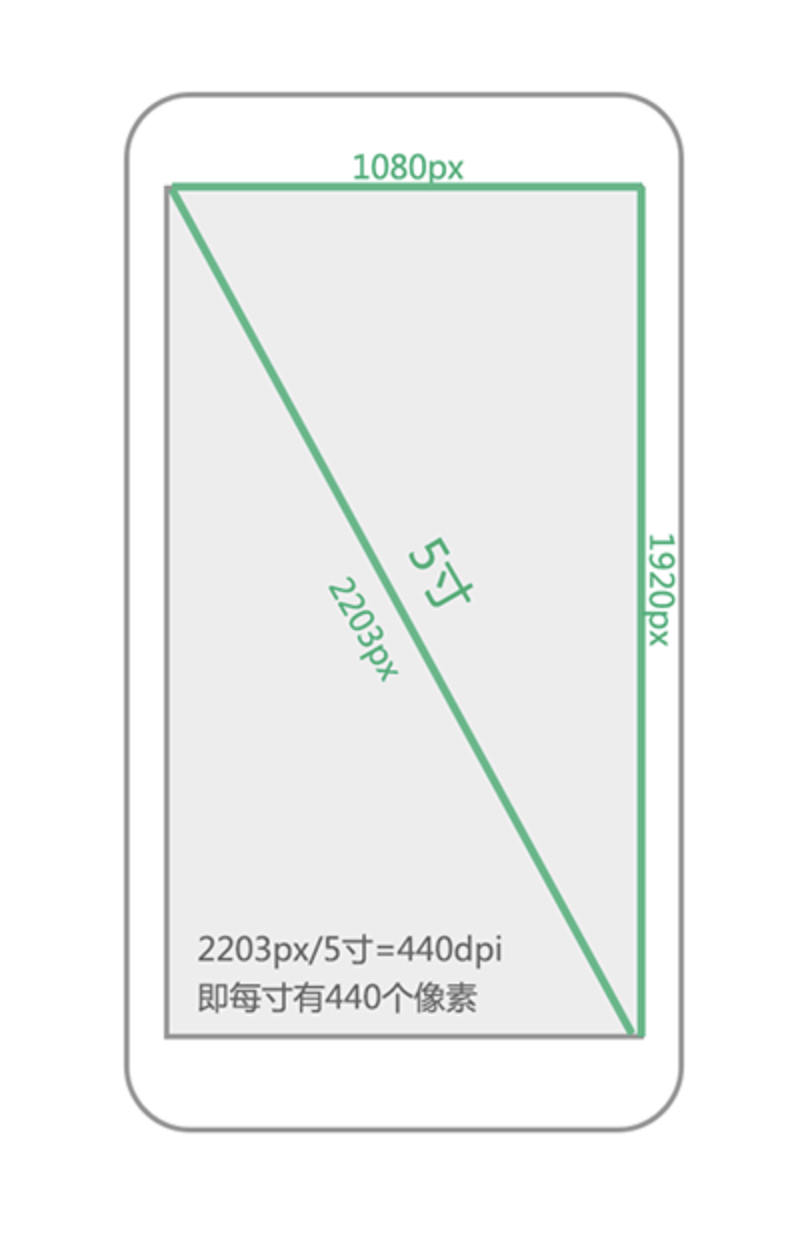 dpi = 對(duì)角線(xiàn)像素?cái)?shù) ÷ 屏幕尺寸