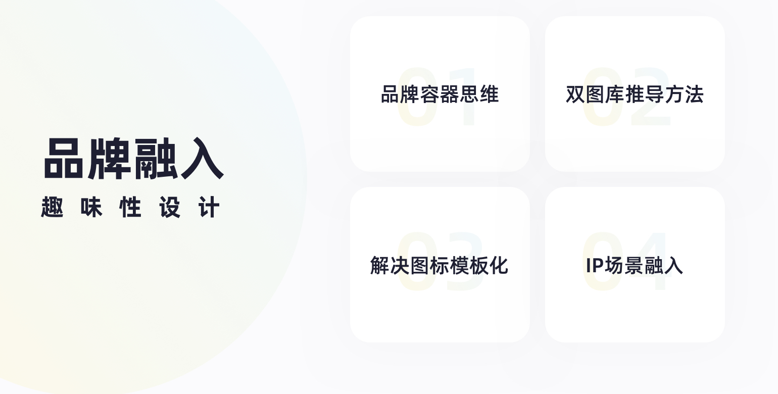 品牌關(guān)鍵詞 → 趣味圖庫(kù)風(fēng)格 → 功能圖庫(kù)適配 → 整體界面統(tǒng)一