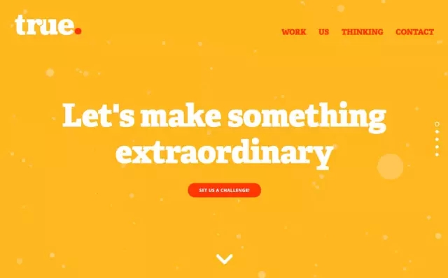 ·單頁設(shè)計:為了最大限度地呈現(xiàn)出各種設(shè)計效果,這些網(wǎng)站通常會沿用之前的單頁設(shè)計,有些網(wǎng)站會加入標準化的導(dǎo)航來引導(dǎo)用戶進入其他的內(nèi)頁。