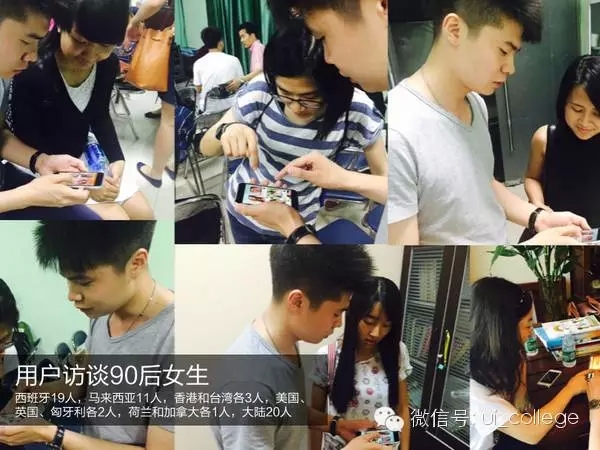 第二個是定性研究,找不同的用戶實際和他們?nèi)チ?,這件事情看起來很難但是其實不用搞得那么復(fù)雜。我們就是讓團隊成員在微信上發(fā)給各種弟弟妹妹親戚朋 友的孩子們看。還有很巧的事情是咱們有個設(shè)計師是基督徒,在他們教會上可以接觸到很多在北京的外籍年輕人,通過與他們交流也收集了很多反饋。