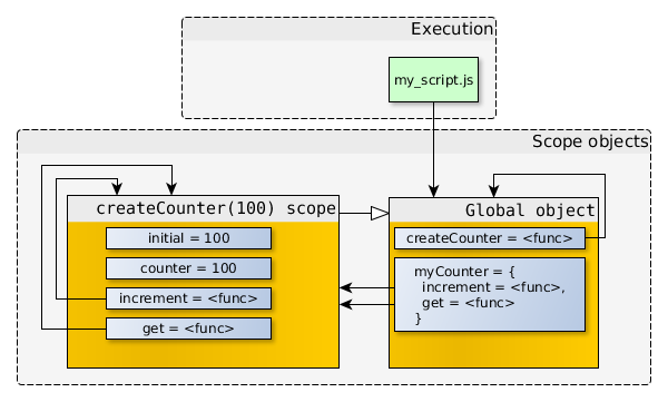 當(dāng)我們調(diào)用createCounter(100)的那一瞬間,對(duì)象之間的關(guān)系如下圖