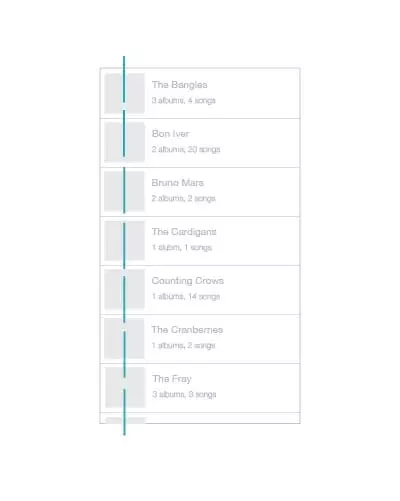 Rdio的APP設計就遵循著這樣的設計規(guī)則,屏幕兩側的控件是相同的規(guī)格,這類布局很適宜閱讀,用戶會自覺地自上到下,從左向右查看。