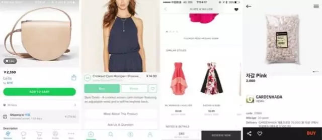所有操作最終都希望被引導(dǎo)到我們想要去的地方,有的是商品購(gòu)買、有的是發(fā)布信息。通常這張頁面上會(huì)有多個(gè)行動(dòng)點(diǎn),作為設(shè)計(jì)師我們希望行動(dòng)點(diǎn)有主次之分,重點(diǎn)突出最核心的操作(比如購(gòu)買)。有些需求方恨不得每一個(gè)行動(dòng)點(diǎn)(購(gòu)買、購(gòu)物車、分享、收藏…)都讓用戶第一時(shí)間看到,我相信不少設(shè)計(jì)師都應(yīng)該遇到過類似問題。但如果站在簡(jiǎn)潔的角度出發(fā),我們分析一下備選的幾款A(yù)PP,“主次分離”的概念就很容易講的清楚了。