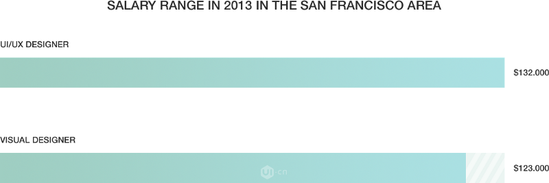 市場本身就是多學(xué)科性的。由Dashburst的圖表得出,擁有至少兩種技能的人,例如UI/UX設(shè)計(jì)或者UI/前端開發(fā),會(huì)得到比UI(視覺)設(shè)計(jì)師每年多10k的薪水。