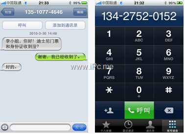 內(nèi)置的短信發(fā)送實在是太經(jīng)典了,寫信人和收信人左右區(qū)分,信息內(nèi)容通過時間順序排列下來,整個信息來回歷史一目了然。呼叫程序同樣出色,重新設(shè)計的數(shù)字鍵盤弱化了字母排列,突出數(shù)字,由此換來寬大容易點擊的屏幕空間。