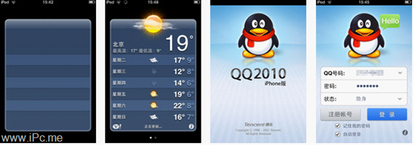 運行天氣應(yīng)用和iPhone QQ時,即使是很短的啟動時間,預(yù)加載背景還是能夠讓人感覺啟動等待的時間縮短了。