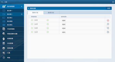 針對(duì)應(yīng)用場景和特殊場景,可以進(jìn)行不同的預(yù)案,設(shè)定不同主題的屏幕內(nèi)容和屏幕切換顯示的時(shí)間。