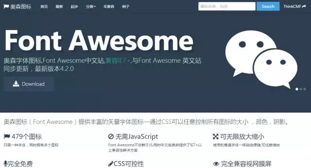 奧森圖標(biāo)(Font Awesome),提供豐富的矢量字體圖標(biāo)—通過(guò)CSS可以任意控制所有圖標(biāo)的大小 ,顏色,陰影:http://www.thinkcmf.com/font/search.html
