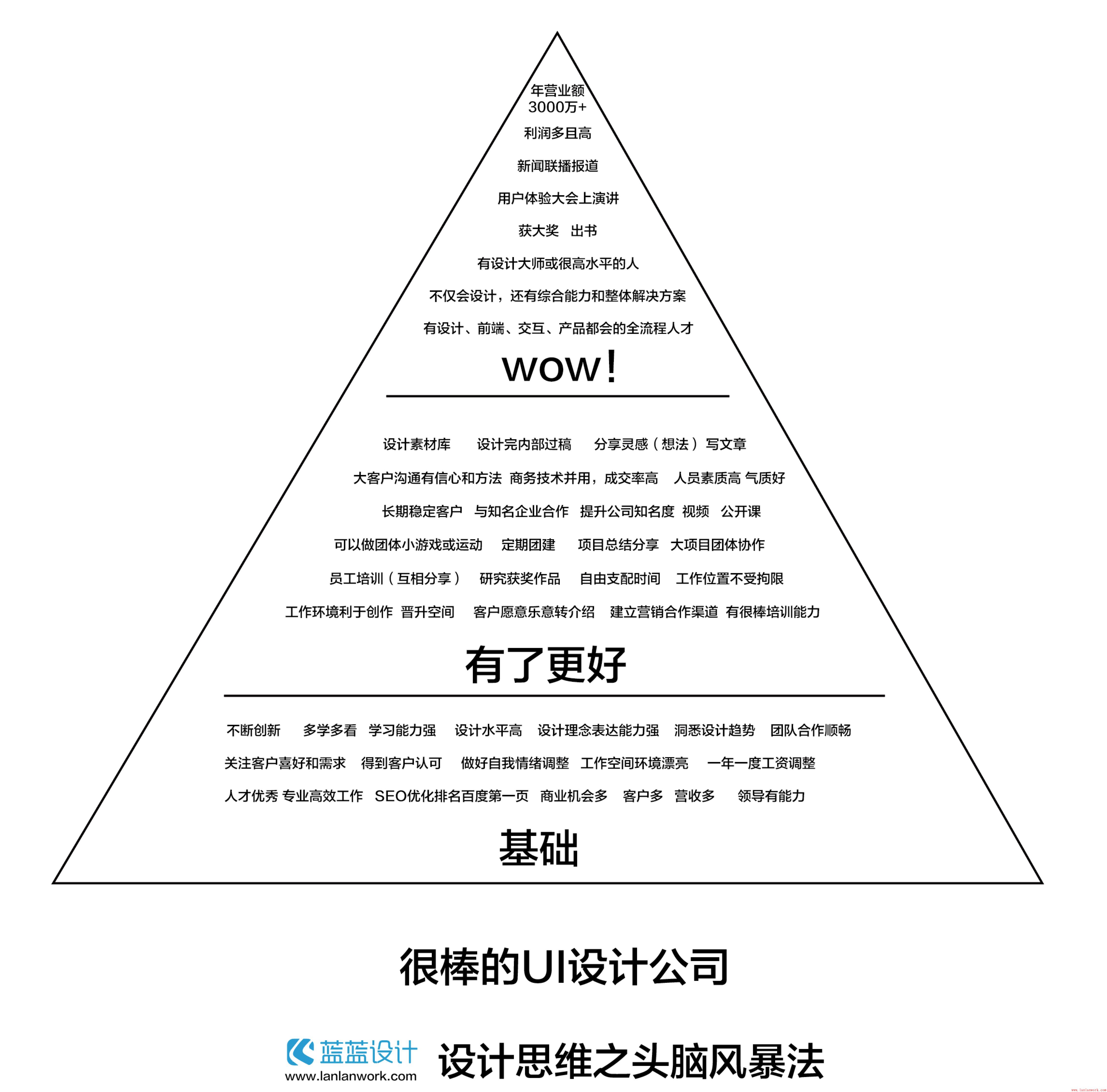藍(lán)藍(lán)設(shè)計(jì)組織部分小組成員以“如何成為一家很牛的UI設(shè)計(jì)公司?”為主題進(jìn)行了一次頭腦風(fēng)暴活動(dòng)。我們將過程做了一下梳理。