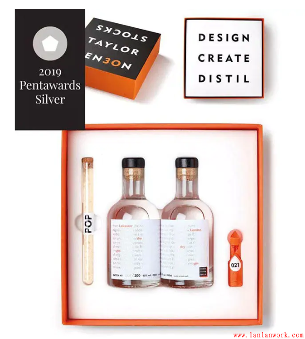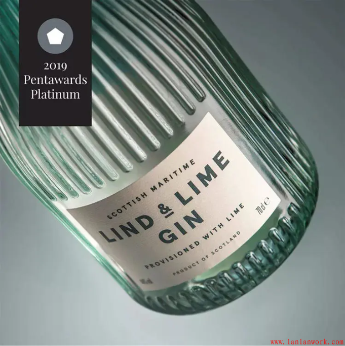 今年飲料類的「鉑金獎」被來自英國愛丁堡的LIND & LIME GIN獲得。包裝設(shè)計由蘇格蘭的創(chuàng)意團隊 Contagious 操刀,酒瓶設(shè)計的靈感源于品牌商The Port of Leith Distillery所在的Leith 地區(qū)海岸上具有歷史意義的工業(yè)建筑以及老窯.