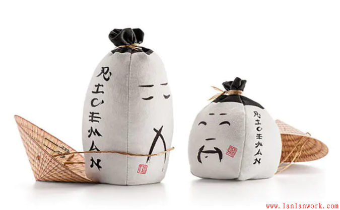 包裝外形以亞洲稻農(nóng)戴蓑帽的傳統(tǒng)形象為原型,圓錐形帽子紙盒蓋子內(nèi)側(cè)則巧妙與標(biāo)記測量米量的米杯結(jié)合,實用又環(huán)保。兩種不同尺寸的袋子分別裝盛不同的大米類型:短粒米為小袋子,長粒米為高袋子。