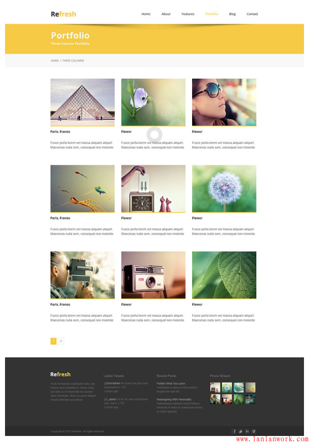 這個(gè)博客頁(yè)面分別用黃色和灰色做背景,形成對(duì)比,又互相襯托,同時(shí)有所側(cè)重。白色半透明色塊鋪在黃色背景上,對(duì)主題進(jìn)行描述,也形成一種顏色深淺明暗的對(duì)比。