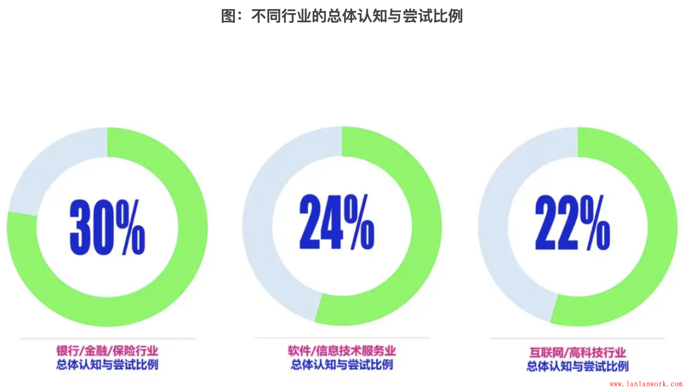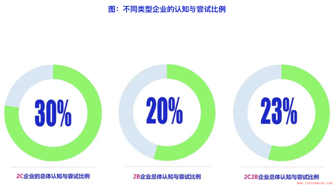 不同類型的企業(yè),在客戶旅程的認(rèn)知和應(yīng)用程度上也表現(xiàn)出較大差異:2C企業(yè)的應(yīng)用程度明顯高于2B類型的企業(yè),總體認(rèn)知和應(yīng)用比例分別為30%和20%。大型企業(yè)也明顯高出中小型企業(yè),分別為29%、22%和19%??蛻袈贸淌且粋€(gè)相對(duì)比較復(fù)雜的系統(tǒng)性方法,真正的應(yīng)用需要人員、資金等各項(xiàng)資源的投入,大型企業(yè)更具備優(yōu)勢(shì)。相比而言,小型企業(yè)的在。分行業(yè)來(lái)看,認(rèn)知和應(yīng)用程度最高是銀行/金融/保險(xiǎn)行業(yè)(30%),一方面是由于這個(gè)行業(yè)的本身的客戶決策流程長(zhǎng)、金額大、風(fēng)險(xiǎn)大,另外一方面也是由于這個(gè)行業(yè)的利潤(rùn)較高,企業(yè)有相對(duì)較為充足的資源進(jìn)行投入。