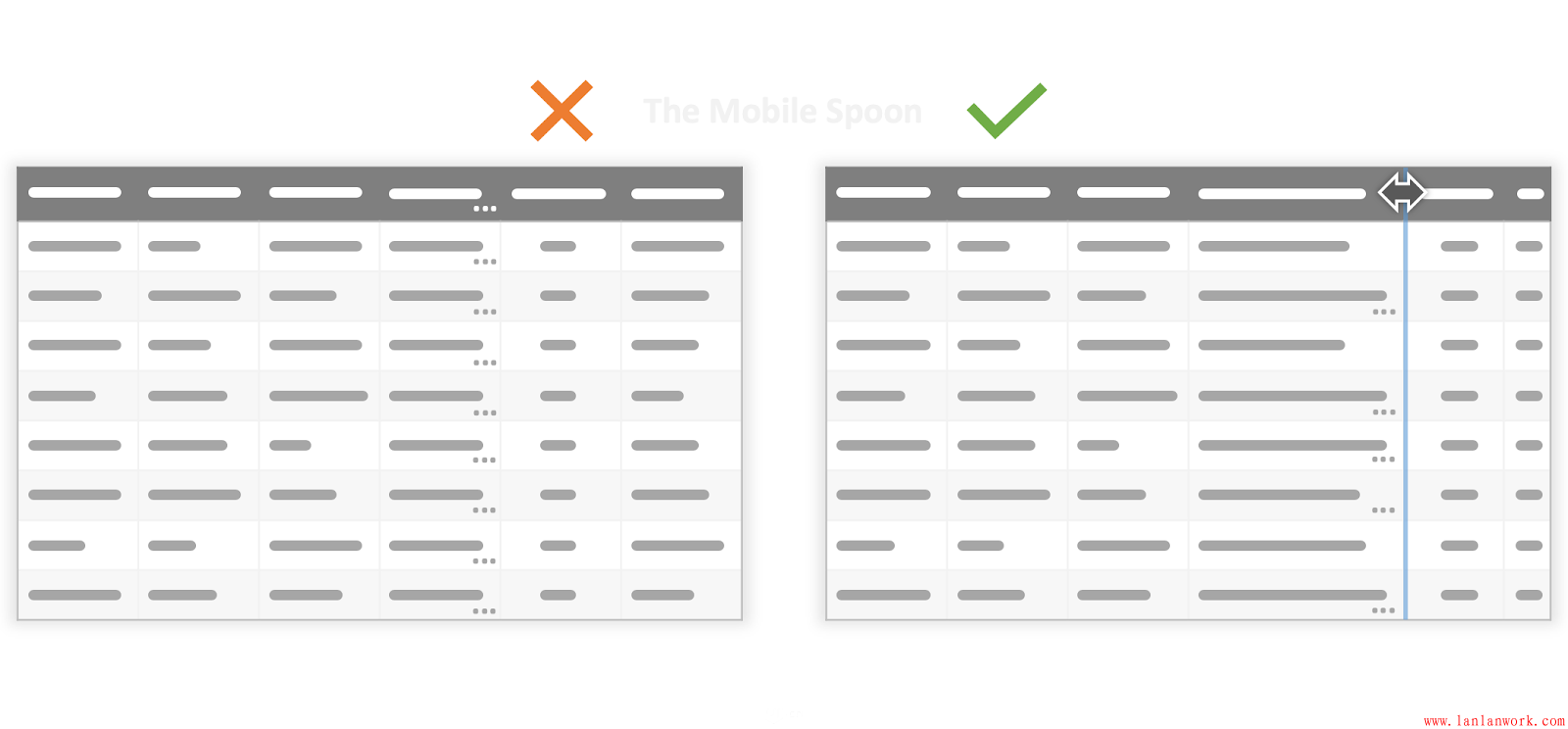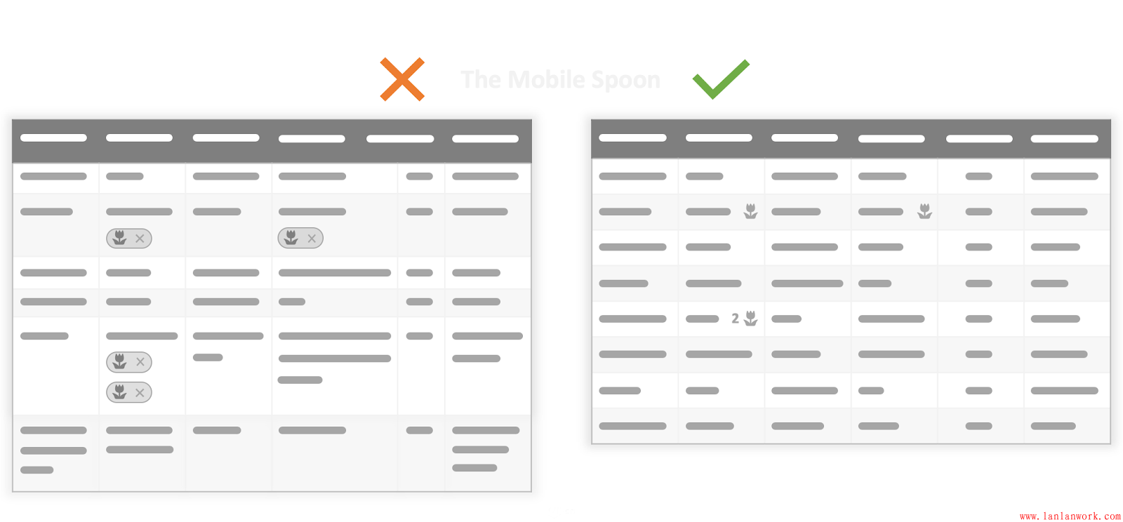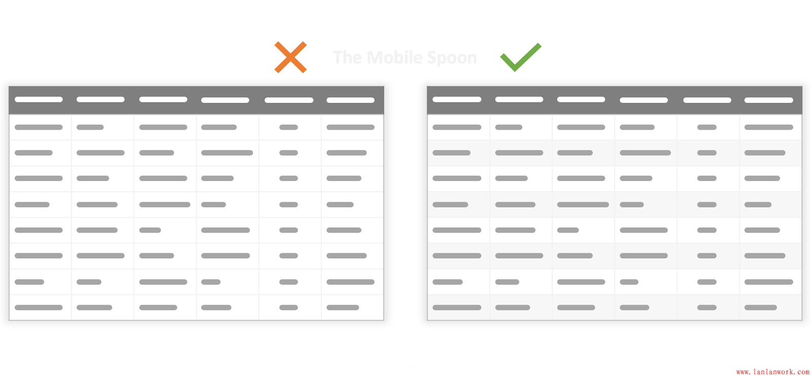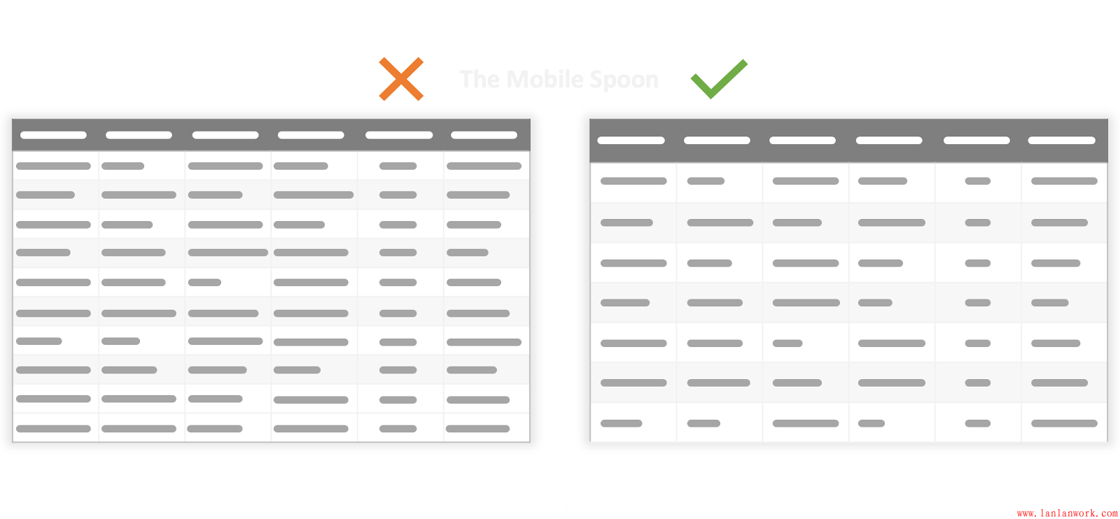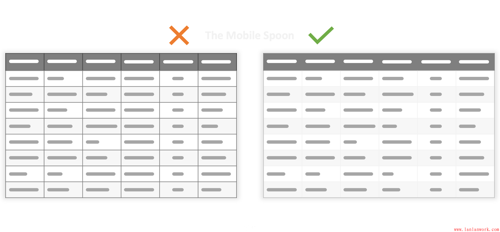 表格和網(wǎng)格是體現(xiàn)結(jié)構(gòu)化信息的,但是,當(dāng)表格的列寬、行高不同時(shí),就會(huì)變得混亂,信息也就會(huì)變得沒(méi)有體系。