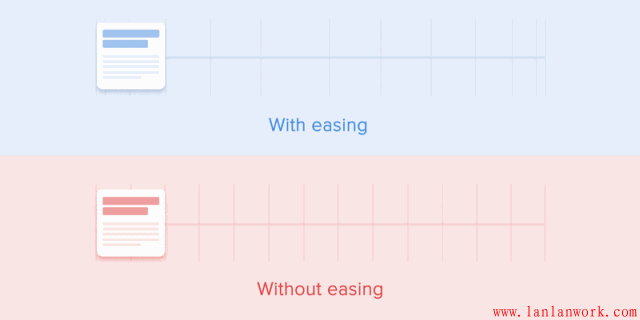 緩入緩出動(dòng)畫常被用在界面中對(duì)象從一個(gè)位置移動(dòng)到另一個(gè)位置時(shí)。在這種情況下,動(dòng)畫的目的是為了不讓人有過多不必要的關(guān)注。