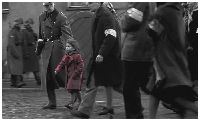 辛德勒名單電影中的某鏡頭,通過色彩強烈的對比拉開視覺層次,給觀眾留下了深刻的印象同時成為經典