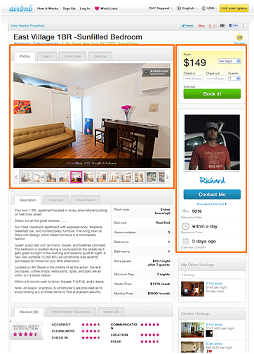 上圖是Airbnb的租房信息detail頁面,租客在租房時最關心的信息為:房間實景、價格、房東的信息;看它的detail信息,也存在很多種類型,但用戶最關心的三類信息因為位置、占用的面積大小讓租客一眼就能掌握房子的基本信息,如有興趣再繼續(xù)看更多詳情。