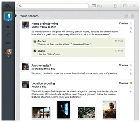 Fluent新型電子郵件界面,箭頭指向、縮進的表現形式很清晰的表達信息的包含關系,雖然這個創(chuàng)業(yè)團隊沒有成功,但產品的設計還是很值得借鑒的