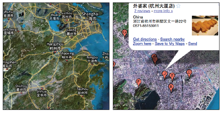 左地圖是市級展示的地名,當用戶搜索到街道級別時,才會把本街區(qū)內的店鋪展示給用戶,在特定的情況下只展示必要的信息,有利于用戶找到自己的目標