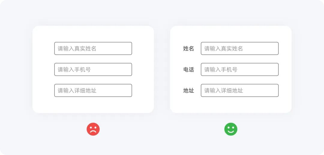 輸入框中的占位符可以為用戶提供初步的指引,幫助他們在開始輸入前有一個(gè)短期的記憶提示。理想情況下,占位符應(yīng)作為標(biāo)簽的補(bǔ)充。然而,如果只有占位符而沒有標(biāo)簽,用戶可能會感到困惑,尤其是在他們點(diǎn)擊輸入框后占位符消失時(shí),可能會一時(shí)記不起要輸入的內(nèi)容。