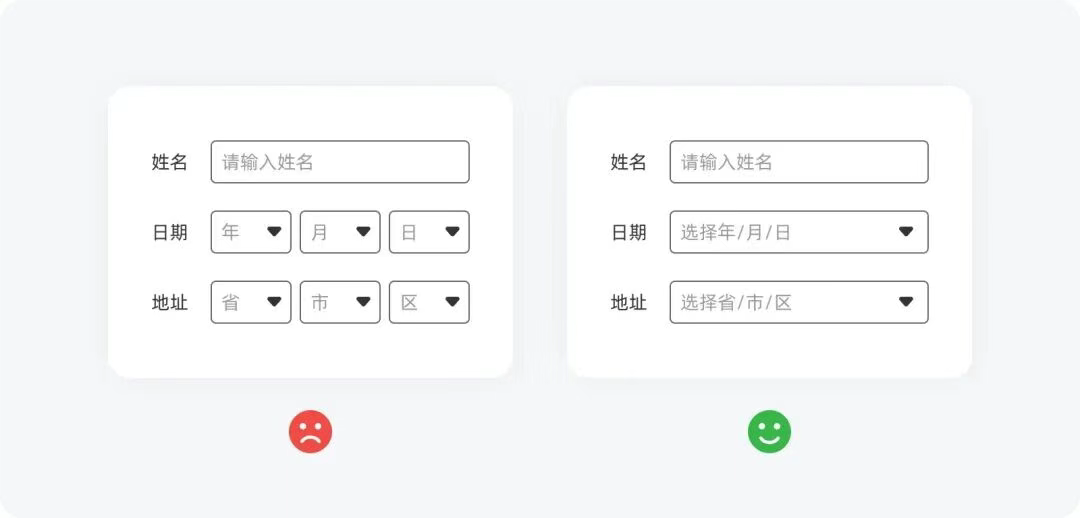 類似地址、日期這類層級內(nèi)容,不要將其分成多個(gè)字段,最好做成聯(lián)動選擇讓用戶一氣呵成。