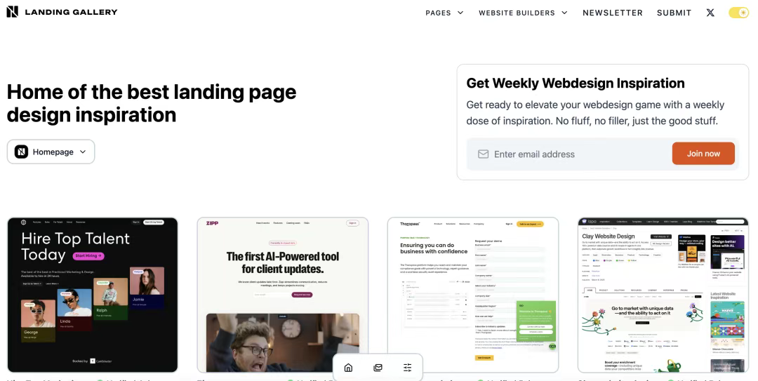 [Landing Gallery](http://landing.gallery) 專注于提供各個(gè)領(lǐng)域的著陸頁設(shè)計(jì)靈感。無論你需要設(shè)計(jì)什么類型的頁面,從主頁、定價(jià)頁面到聯(lián)系頁面,甚至是404錯(cuò)誤頁面,這里都能找到優(yōu)質(zhì)的參考案例。