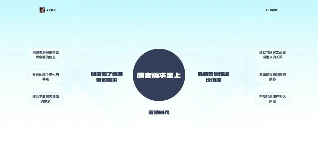 營銷時(shí)代(用戶思維2.0): 隨著市場的競爭加劇,設(shè)計(jì)開始注重顧客需求至上,關(guān)系逐漸從簡單的產(chǎn)品使用者轉(zhuǎn)變?yōu)楦由钊氲男枨鬂M足者,用戶在購買決策中扮演著更為積極的角色。