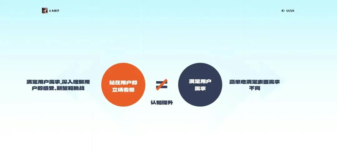 3. 明確3:要「站在用戶的立場著想」,而不是「滿足用戶需求」 這一認(rèn)知挑戰(zhàn)了以往滿足用戶需求的思維模式。不僅要了解用戶的需求,更要站在用戶的視角,深入理解他們的痛點(diǎn)和欲望。通過這種方式,設(shè)計(jì)可以更好地貼合用戶的實(shí)際體驗(yàn),而不僅僅是單純地提供功能。
