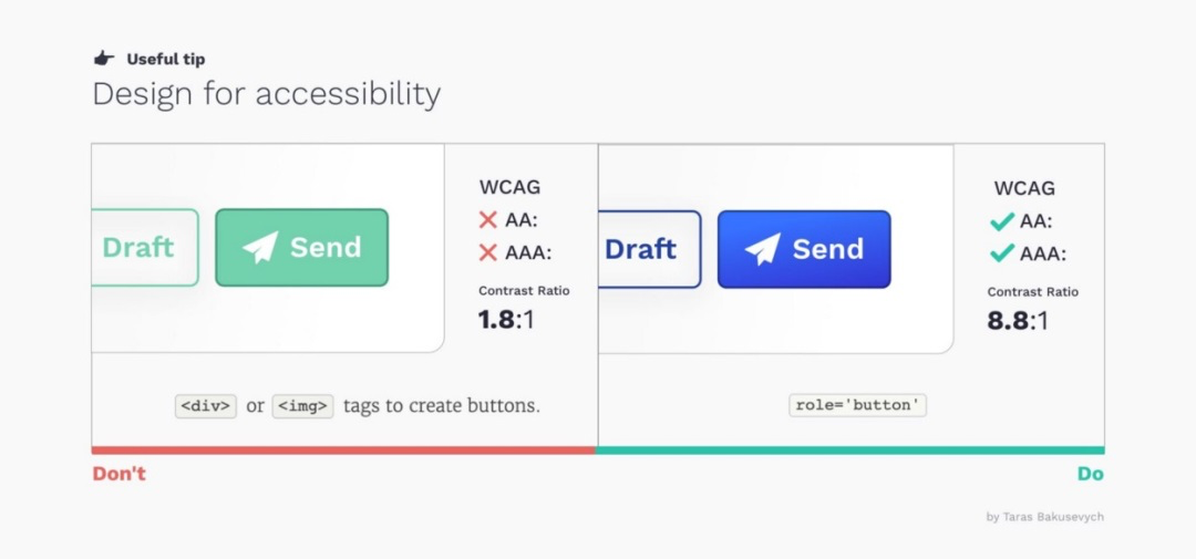所有組件都應遵循無障礙設計原則。除了目標區(qū)域大小,字體尺寸、色彩對比度也至關重要。有許多工具可以幫助檢測組件的可訪問性表現(xiàn)。