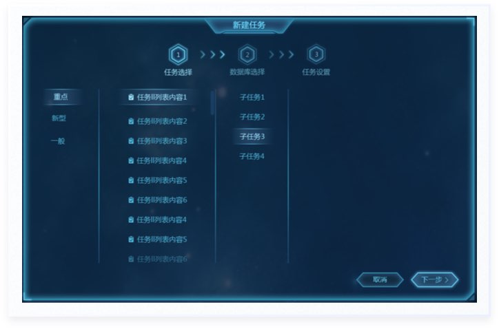 視覺方面使用大屏常用的深色背景,主色采用藍(lán)色配色,通過整體排版,元素的設(shè)計,來凸顯科技感。頁面布局方面,采用模塊化布局,便于區(qū)分信息類別;扁平化的視覺元素+框式設(shè)計,最大程度地減少頁面元素的干擾,提升頁面內(nèi)容承載量。