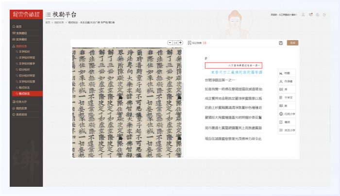 標(biāo)記文字通常用于解釋、說明或強(qiáng)調(diào)藏經(jīng)中的某些部分,將其放在右側(cè)可以確保用戶在閱讀藏經(jīng)的同時(shí),能夠輕松地獲取到這些額外的信息。這種布局方式也有助于減少用戶的認(rèn)知負(fù)擔(dān),提高閱讀效率。