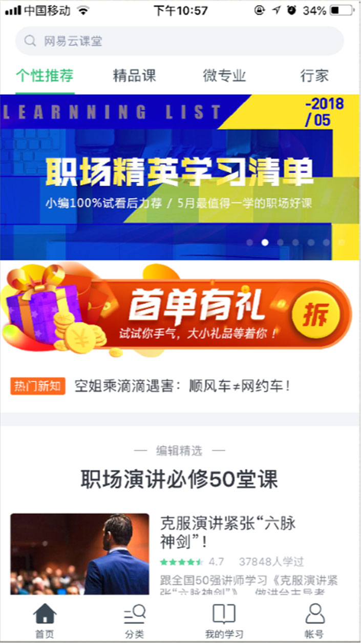 1.首頁根據(jù)產(chǎn)品的不同特色,設(shè)置了二級(jí)導(dǎo)航,將個(gè)性化、精品課、微專 業(yè)、行家作為二級(jí)導(dǎo)航標(biāo)題,既能用來統(tǒng)一呈現(xiàn)特色內(nèi)容,又能保證頁面信息的 層級(jí)關(guān)系清晰明了;